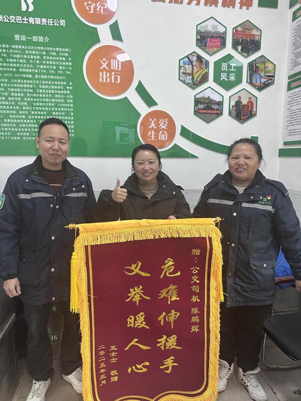 3月6日,身體恢復(fù)健康的王文倩女士特意來公司送來錦旗,向陳鵬輝兩位駕駛員表達深深的謝意,陳鵬輝和張賽的義舉,不僅展現(xiàn)了公交人的高尚品德,也為株洲寒冷的冬日增添了一抹溫暖的亮色。