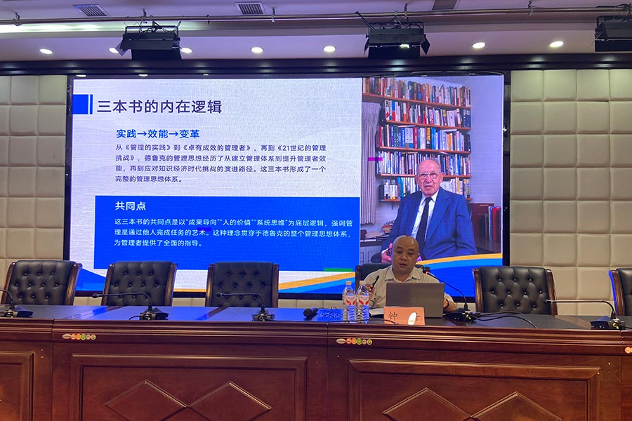 現(xiàn)場(chǎng),鐘丹圍繞德魯克三大經(jīng)典著作,深入解讀其管理思想的核心價(jià)值、時(shí)代意義與演進(jìn)邏輯,幫助參訓(xùn)人員全面深刻地認(rèn)知德魯克管理思想體系。在核心思想解析環(huán)節(jié),他巧妙地將德魯克五大核心思想與公交營(yíng)運(yùn)場(chǎng)景相結(jié)合,讓抽象理論變得通俗易懂。同時(shí),他還結(jié)合多地公交企業(yè)典型案例,生動(dòng)展現(xiàn)管理思想在公交行業(yè)中形成的實(shí)踐成果,為參訓(xùn)人員提供了可借鑒、可復(fù)制的經(jīng)驗(yàn)。